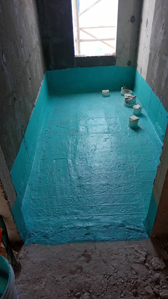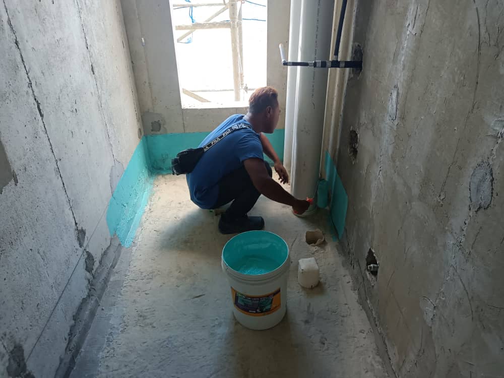Dritech Chemicals supplied a combination of advanced waterproofing systems tailored to each area’s needs. The internal wet areas were treated with Dri-Lastic WP 20, a flexible, water-based waterproofing membrane that provides superior protection against water leakages. Its green-coloured finishing also allows easy QA/QC to ensure sufficient consumption at all areas.